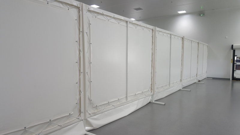 Notre expérience dans la fabrication de bâches nous permet de réaliser des cloisons sur mesure en bâche avec la norme la mieux adaptée (norme M1, M2…). Le cloisonnement avec de la bâche est avant tout une solution simple, esthétique et économique pour votre entreprise.